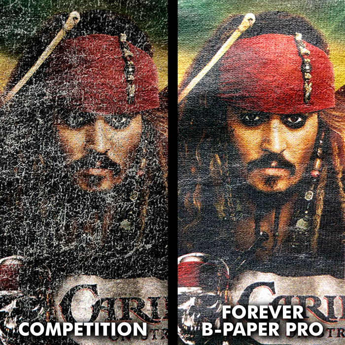 Create more photorealistic transfers. Through the special FOREVER B-Paper PRO mixture, we have created a product that takes your work and creativity to the next level. Looking super colourful and more vibrant, your designs will be jumping out of the t-shirt.